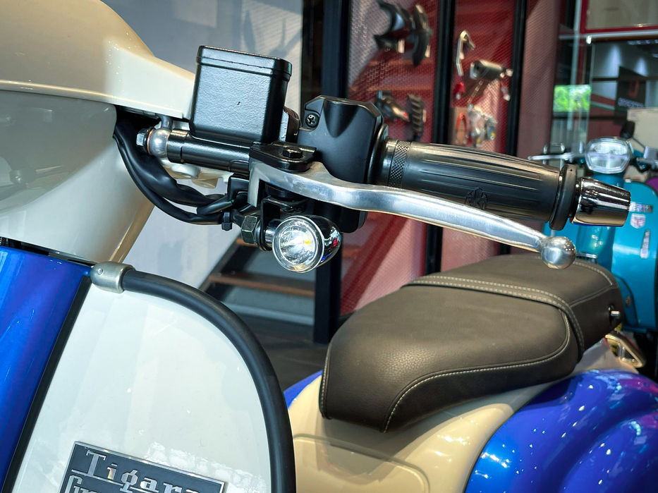 The TG will feature a predominantly steel body with cast aluminium headset and horncast. It will feature as standard the new ‘lowrider’ seat to give confidence to those with shorter legs and the ‘King and Queen’ seat of the GP as an aftermarket option for those seeking a little more padding. We have focussed on ‘attention to detail’, elements of the scooter design have been very carefully considered such as the ‘gemlight’ and we are delighted with the results.